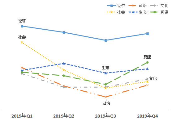 1、從領域來看,文化、政治領域改革熱度值偏低,黨建領域提升最多。第四季度,經(jīng)濟領域得分78.41,政治領域得分 65.95,文化領域得分67.43,社會領域得分66.82,生態(tài)領域得分69.89,黨建領域得分71.43。