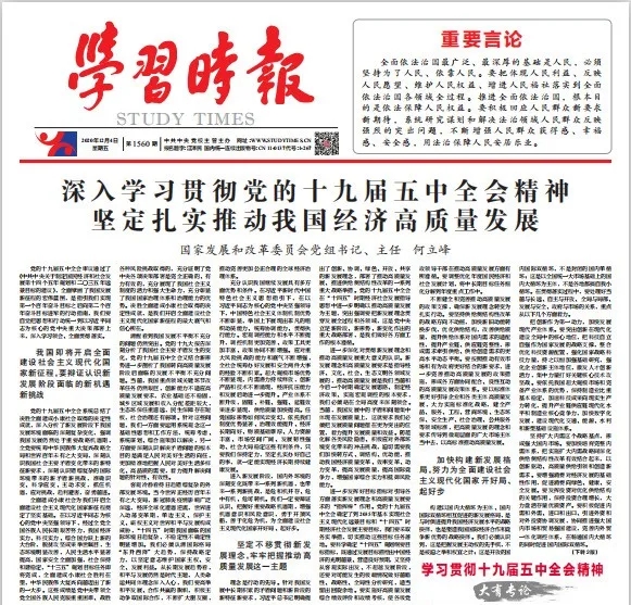 黨的十九屆五中全會(huì)審議通過(guò)了《中共中央關(guān)于制定國(guó)民經(jīng)濟(jì)和社會(huì)發(fā)展第十四個(gè)五年規(guī)劃和二〇三五年遠(yuǎn)景目標(biāo)的建議》,全面擘畫(huà)了我國(guó)發(fā)展新征程的宏偉藍(lán)圖,是指引我們實(shí)現(xiàn)第一個(gè)百年奮斗目標(biāo)之后向第二個(gè)百年奮斗目標(biāo)進(jìn)軍的行動(dòng)指南,我們要自覺(jué)把思想和行動(dòng)統(tǒng)一到以習(xí)近平同志為核心的黨中央重大決策部署上來(lái),深入學(xué)習(xí)領(lǐng)會(huì)、全面貫徹落實(shí)。