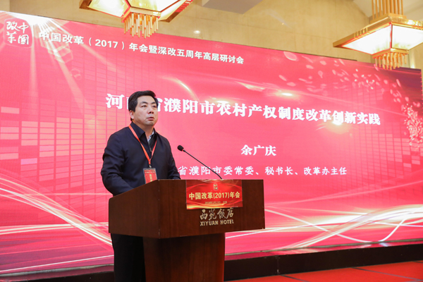 河南省濮陽市委常委、秘書長、改革辦主任余廣慶介紹了濮陽特色鮮明的農(nóng)村集體產(chǎn)權(quán)制度改革經(jīng)驗(yàn):在推進(jìn)農(nóng)村集體產(chǎn)權(quán)制度改革中,濮陽市農(nóng)村黨支部成為基層黨建工作的一個重大創(chuàng)新,市委領(lǐng)導(dǎo)親自上陣親自督辦、跟蹤進(jìn)度;建成了比較完善的市縣鄉(xiāng)三級產(chǎn)權(quán)交易平臺,充分釋放農(nóng)村要素活力;依托市縣兩級黨校邀請專家解讀改革政策改革事件推動農(nóng)村改革。