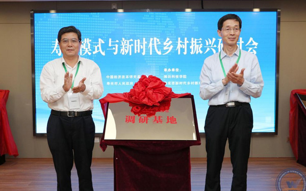 5月25日-26日,由中國經(jīng)濟體制改革研究會、中國經(jīng)濟改革研究基金會、壽光市委市政府聯(lián)合主辦的“壽光模式與新時代鄉(xiāng)村振興”研討會在壽光市農(nóng)圣文化學(xué)術(shù)交流中心舉行。與會專家聽取了“壽光模式”研究課題組成果匯報,開展了熱烈研討,并到三元朱村、菜博會、全國蔬菜質(zhì)量標(biāo)準(zhǔn)中心等地進(jìn)行了實地調(diào)研。新時代鄉(xiāng)村振興與區(qū)域經(jīng)濟發(fā)展研究院、中國經(jīng)濟體制改革研究會博士后科研工作站壽光分站、人民網(wǎng)山東頻道調(diào)研基地”同期揭牌。