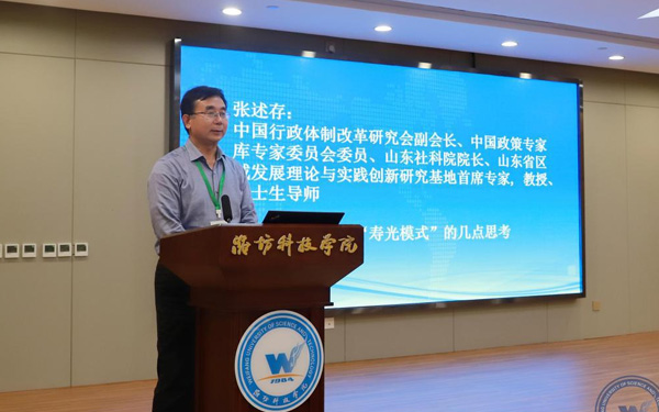 新時代鄉(xiāng)村振興與區(qū)域經(jīng)濟發(fā)展研究院執(zhí)行院長、經(jīng)濟管理學(xué)部主任、教授、博士生導(dǎo)師張友祥代表“壽光模式”研究課題組從“壽光模式”的內(nèi)涵和特征、形成機制、實踐價值等方面作了研究成果匯報。