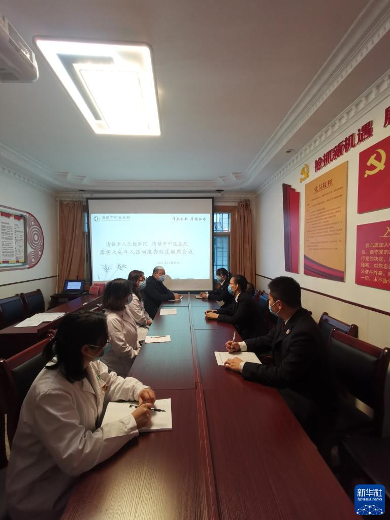 12月16日,貴州省清鎮(zhèn)市檢察機關與醫(yī)療機構召開聯席會議,研究推進醫(yī)療機構落實侵害未成年人案件強制報告制度。新華社發(fā)(杜遠敏 攝)