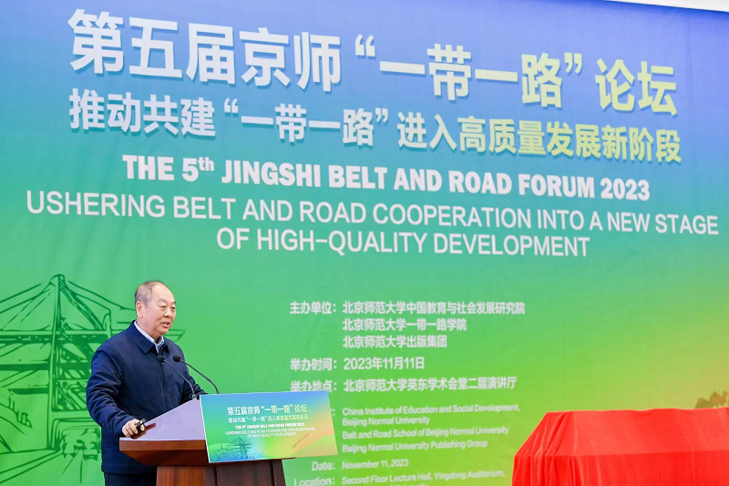 第五屆京師“一帶一路”論壇由北京師范大學一帶一路學院主辦,主題為推動共建“一帶一路”進入高質(zhì)量發(fā)展新階段。北京師范大學黨委書記程建平,中國法學會副會長甘藏春,國家發(fā)展改革委區(qū)域開放司(推進“一帶一路”建設工作領導小組辦公室)司長徐建平,外交部國際經(jīng)濟司副司長郭學軍等也出席開幕式并發(fā)表主旨演講。北京師范大學特聘教授Harinder Kohli 以及中國社會科學院有關所,清華大學等高校的專家學者,有關企業(yè)負責人等也發(fā)表專題演講。