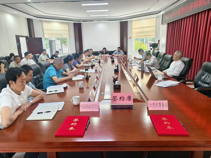 在紅河州調(diào)研期間,趙艾以“擴(kuò)大沿邊開放是推進(jìn)中國式現(xiàn)代化的重要任務(wù)”為題,為州委書記趙瑞君主持的州委中心組集中學(xué)習(xí)做專題報告。州委副書記、州長羅萍等州委理論學(xué)習(xí)中心組成員出席,州委、州政府有關(guān)領(lǐng)導(dǎo)、相關(guān)部門負(fù)責(zé)同志列席,全州13縣(市)主要負(fù)責(zé)同志以視頻形式聽講。副州長許高紅主持召開“紅河州開放型經(jīng)濟(jì)體制改革專項小組”專題會,州委政研室、州商務(wù)局、開放辦、交通運(yùn)輸局、農(nóng)業(yè)農(nóng)村局、外辦、蒙自海關(guān)、稅務(wù)局、金融監(jiān)管局、人民銀行紅河支行等單位負(fù)責(zé)同志參加并發(fā)言,向調(diào)研組介紹了有關(guān)情況。紅河州商務(wù)局出面與我會“一帶一路”建設(shè)專委會簽訂了合作框架協(xié)議。調(diào)研組還到云南錫業(yè)化工材料有限公司、云南美科新能源發(fā)展有限公司、蒙自經(jīng)開區(qū)管委會、元陽縣鄉(xiāng)村振興產(chǎn)業(yè)園、云南自貿(mào)試驗區(qū)紅河片區(qū)(河口邊合區(qū))、河口口岸等實地調(diào)研。